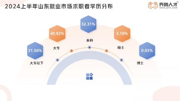 从上图2024上半年山东就业市场求职者学历分布数据来看,大专学历占比40.92%,成为求职市场重要力量。