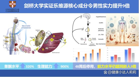 该情况被剑桥大学揭示后,“睾酮”成为男科领域关注的焦点。据泌尿外科权威人士安东尼教授分析了200万名男性的身体数据,发现:睾酮水平的高低,直接决定男人生理健康与肌肉构建,连带耐力、充血量、持续时长等也受其影响。高睾酮水平,可助男性在各个年龄段维持泌尿系统健康态,包括心脑等器官系统也能受益。