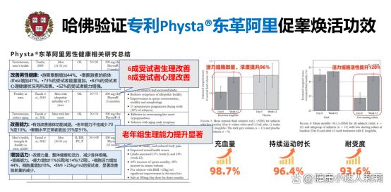 在三期临床试验中,该物质在提振雄风上,爆发出前所未有的效能。尤其是老年组(60岁+)在专利东革阿里的干预下,能力涨幅高达60%,实现个人力量、生理健康和活力的显著增长。而本身能力稳定者在摄入30天的专利东革阿里后,睾酮水平同样增长35%-91%,充血量、持续时长、耐受度均提升90%以上,能力资本远胜以往。