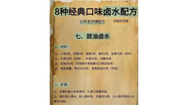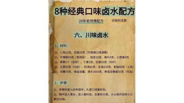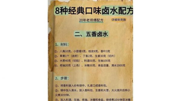 网址: 20年老师傅私藏8种卤水配方,厨房小白也能变大师 https://m.trfsz.com/newsview1750775.html