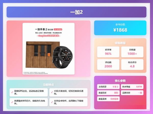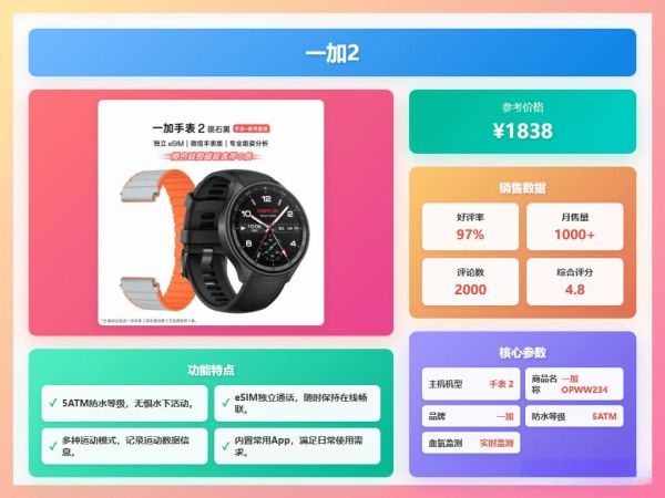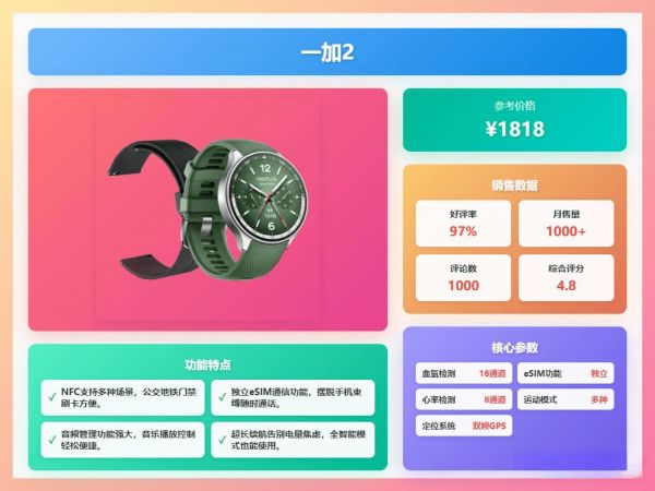 当然,除了功能,我们也得考虑一下性价比。一加手表系列在续航、App支持等方面表现都还不错,但具体到哪一款,还得看你的实际需求和预算。可以多看看不同型号的参数对比,重点关注eSIM、GPS、NFC等功能是否满足你的需求。