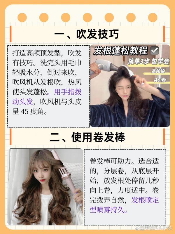 打造高颅顶发型需要一些技巧和方法。大家可以根据自己的发质和喜好选择适合自己的方法,让自己拥有迷人的高颅顶发型。