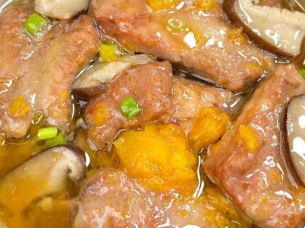 食材准备:排骨、南瓜、香菇、姜片、葱段。