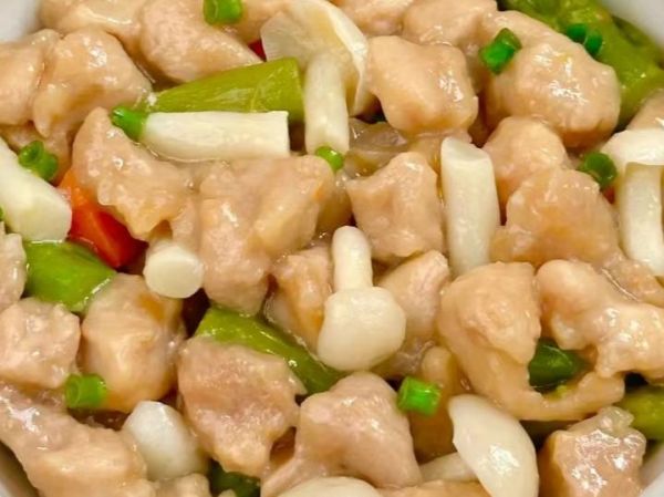食材准备:鸡腿、芦笋、海鲜菇、姜丝。