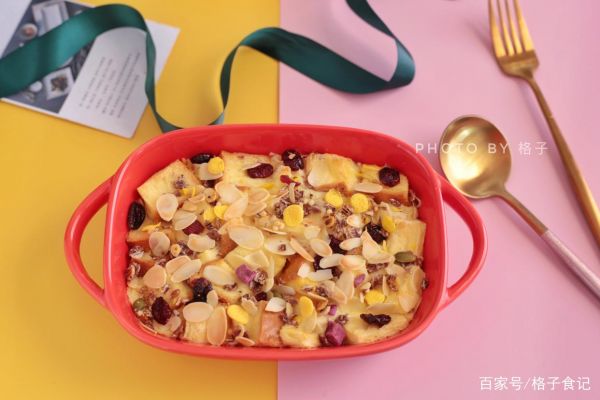 材料:吐司:2片、鸡蛋:1个、牛奶:200毫升、杏仁片:一小把、蔓越莓干:适量、谷物麦片:适量