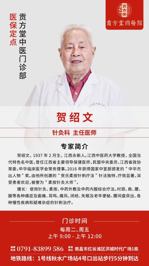 坐诊地点:江西省南昌市红谷滩区洪城时代广场1栋贡方堂国医馆 · 中医门诊部