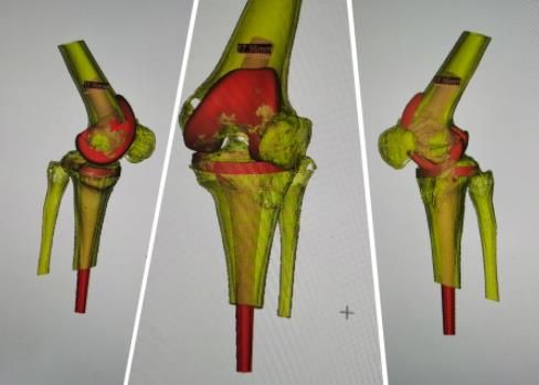 一个月的时间,经过反复AI模拟,最终打磨定制出适用于患者的人工膝关节假体。