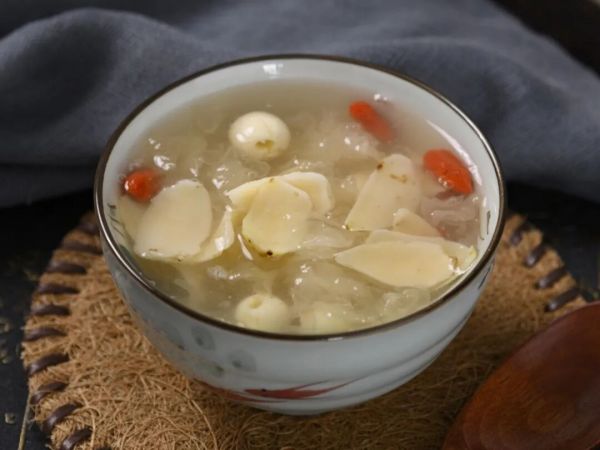 做法:将银耳泡发洗净,百合洗净。将银耳、百合加水炖煮至软烂,加入冰糖调味即可。
