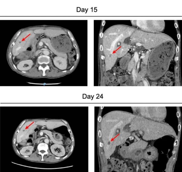 考虑到异种移植肝存在持续补体激活和内皮损伤的风险,治疗团队决定紧急进行异种移植肝切除术,于术后第 38 天实施。异种移植物移除后,患者的整体情况保持稳定。