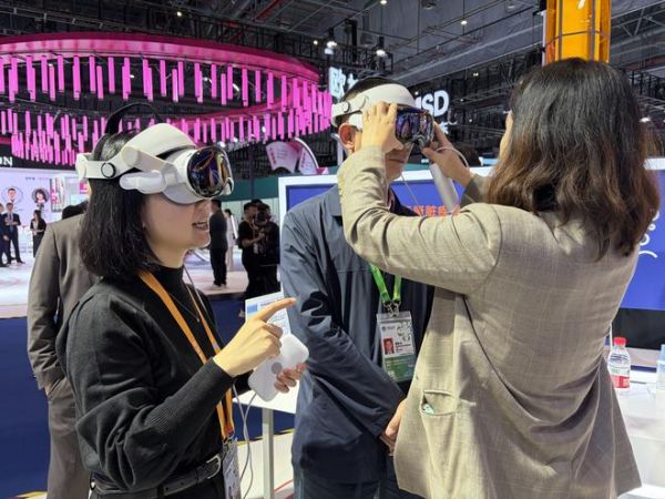 图说:参观者借助Apple Vision Pro设备沉浸式体验药物如何在肾脏内发挥作用。图/新京报记者 王卡拉 摄