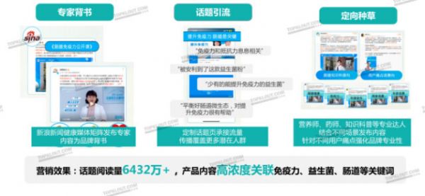 想要深化用户认知,品牌需要通过专业背书与热点效应来建立品牌专业形象,提升品牌在大健康领域的地位,从而提升品牌与产品的认知度。此时,新浪新闻官方媒体矩阵和专家名医发布的内容,能够为品牌带来专业性的深化,定制话题则成为品牌内容传播的场域,放大传播效应,承接公域流量。
