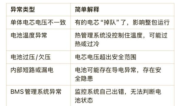 这表示车辆的动力电池系统已经检测到某种异常。虽然具体的异常情况可能多种多样,但可能包括但不限于以下几种: