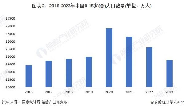国家统计局数据显示,2013-2022年我国儿童人口数量和其在我国人口总数中的占比均呈波动递增趋势;2022年我国0-15岁(含)人口数量为25615万人。2023年末,全国0—15岁人口为24789万人,占全国人口的17.6%,同比有所下降。