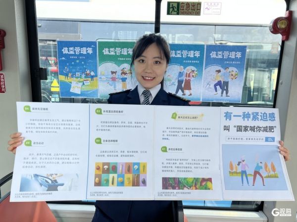 此前,全国两会民生主题记者会上呼吁全民科学减重、预防慢性病。为啥国家都在喊你“管理体重”?因为体重是衡量一个人健康状况的重要指标之一。据现代医学研究证实,人太胖或太瘦都会影响健康。17日,在612路车厢内,工作人员张扬整理汇总涵盖了体重指数(BMI)的计算、如何健康减重、如何吃对食物和健康饮食搭配要点等多个与健康息息相关的主题海报张贴在车厢内,让乘客在乘车的过程中轻松获取体重管理、健康搭配饮食等小知识。“我最近正想减肥呢,平时快走几步都气喘吁吁的,算了一下自己的BMI,其实已经超标了,管住嘴、迈开腿、睡好觉、科学减重才是正确的减肥方式。”乘坐612路公交车的牛先生表示,这种新颖的主题车厢很契合最近关于“体重管理年”的热门话题,自己也要在夏天来临之前完成减肥目标。