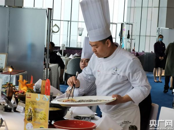 大厨现场烹饪创新菜品 (央广记者吴善阳摄)