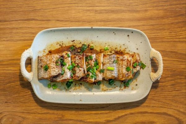 香煎带鱼段:带鱼洗净切段,用少许盐、姜片腌制片刻,下锅小火慢煎至两面金黄。鱼骨酥软,可以一起吃下,补钙效果更好。