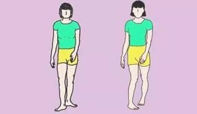 3、外八字:伤害膝关节、加速关节退化如果走路是迈着外八字脚步,就说明脚趾向外的角度过大,久而久之会让膝盖外移,双腿变成X型,甚至导致膝关节疼痛以及加速关节退化。