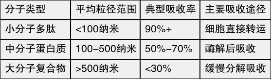 胶原三肽等微分子粒径小于500道尔顿,经胃黏膜直接渗透,临床数据显示吸收效率达92%以上。