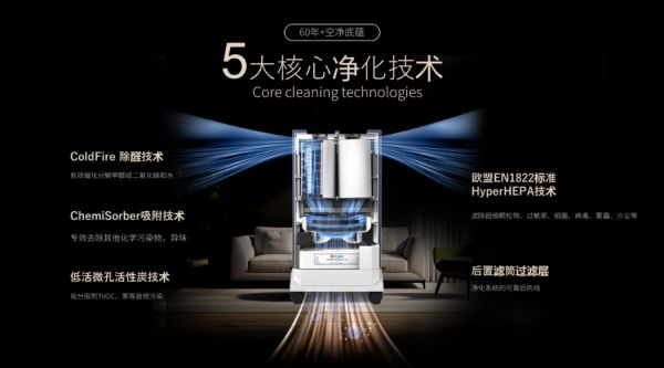 滤芯耐用性:滤芯设计贴合装修污染“长期净化”需求,采用分层结构,底层H11预处理滤芯负责拦截大颗粒,使用寿命约6个月;核心除醛滤芯(搭载ColdFire技术)凭借60,000mg甲醛CCM(F4级40倍),使用寿命长达3-5年;颗粒物滤芯(HyperHEPA)CCM达420,000mg(P4级),长效性突出,通过10年除醛性能抗衰减认证。