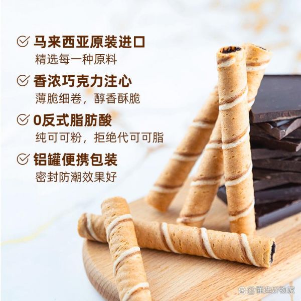 2️⃣浓厚的注心设计:独特工艺让每个蛋卷都充满了浓郁的巧克力内馅,享用时犹如在舌尖上漫游。甜蜜的巧克力心融化在每一个咬合之间,带来无与伦比的味蕾盛宴,畅享奢华时光。
