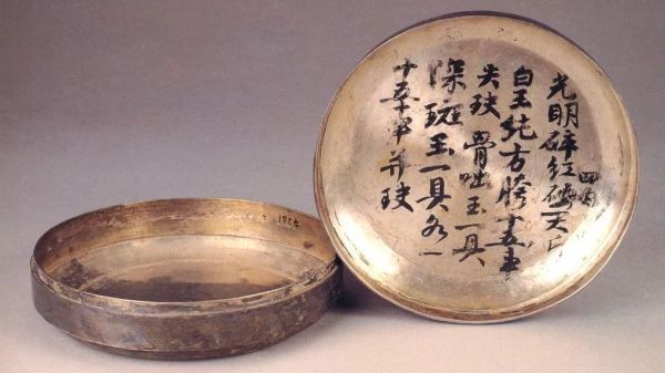 1970年,西安南郊何家村出土的唐代窖藏的两瓮金银器物, 其中有不少贵重药材和医药器具。这批药材多是矿物药,它们按不同种类和等级分装在十多个金、银制的圆形药盒里,盒盖内写明了药物名称、品级与数量。盛贮药具作成盒、罐、鼎等形状, 玲珑别致, 盖封严密。这批医药文物有力地说明唐代医药学的发展情况。