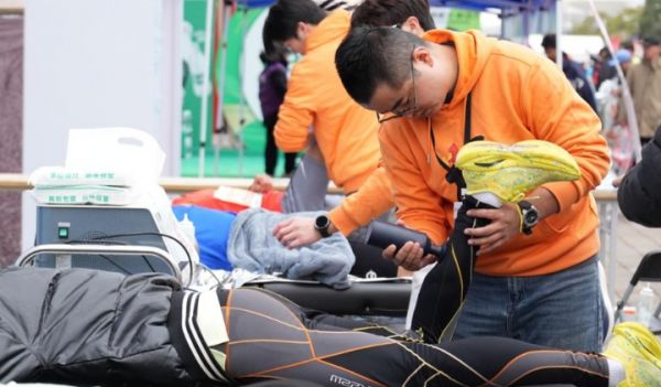 “很多人忽略了,身体在冲线那一刻,并没有‘停机’。”作为赛事官方医疗保障团队成员,中心负责人马晓鹏说。长时间奔跑后,跑者的肌肉和关节处于高度负荷状态。对此,马晓鹏表示:“肌肉纤维在持续收缩中会产生细微损耗,这时大力拉伸,就像让疲劳的橡皮筋再被猛拉,可能加重损伤。”