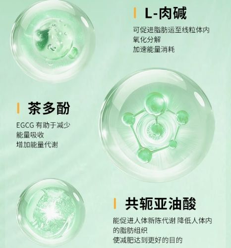 产品采用独特的“三重协同”配方,精选左旋肉碱、共轭亚油酸和茶多酚三种核心成分。左旋肉碱可以将脂肪搬运至线粒体中进行燃烧、分解;共轭亚油酸可以调节脂肪代谢,减少脂肪堆积;茶多酚则具有强大的抗氧化作用,能提高身体的新陈代谢水平。这三种成分通过精准配比实现协同作用,既保留了成分的天然特性,又通过科学配比提升了整体功效。