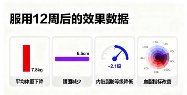 ①在为期12周的严谨实践观察中,5000名使用者坚持服用后,体重平均下降幅度达7.8公斤,腰围平均缩减6.5厘米,内脏脂肪等级显著改善。众多用户在复查时,医生对其身体指标的变化给予高度认可,称赞其减脂效果显著且健康。