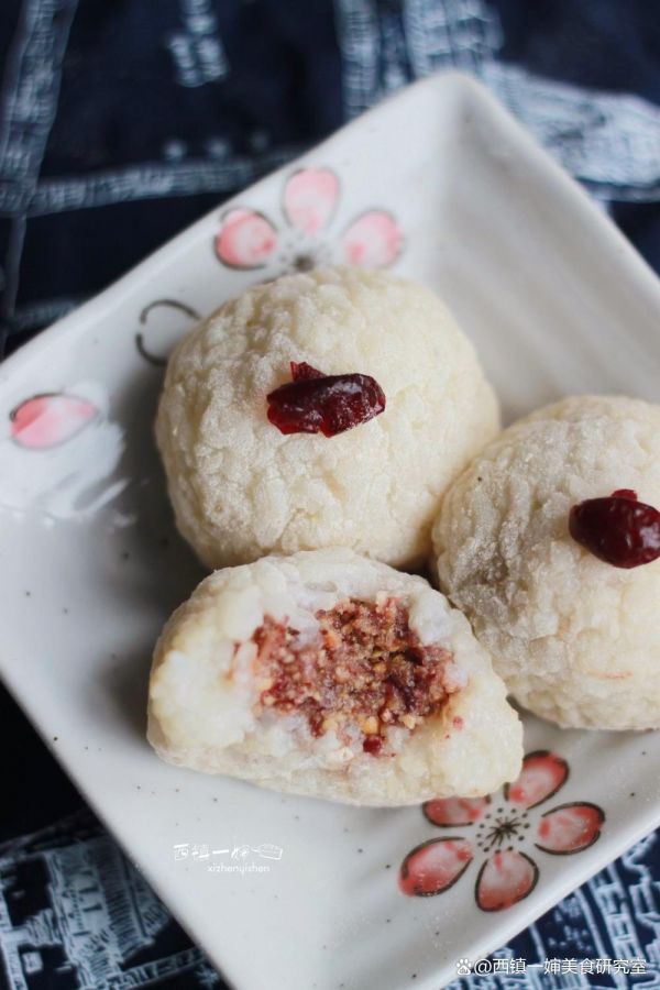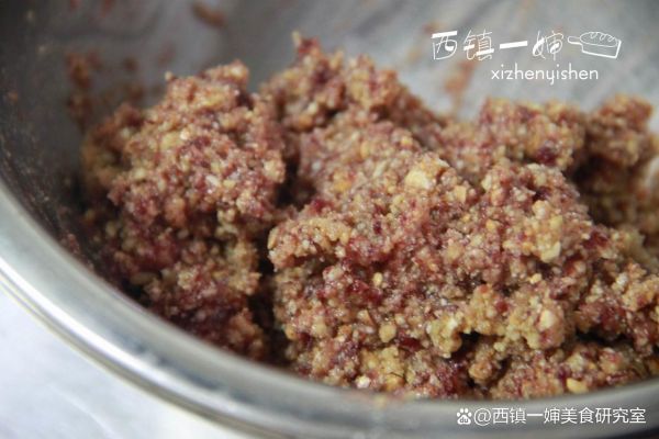 蔓越莓馅:蔓越莓干100克,清水少许,生花生60克,生核桃仁30克,糖桂花少许。