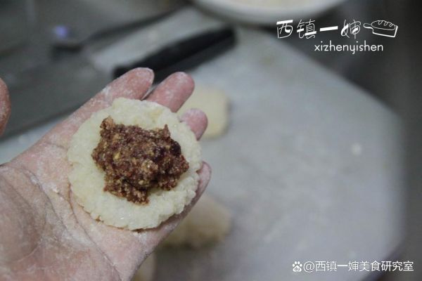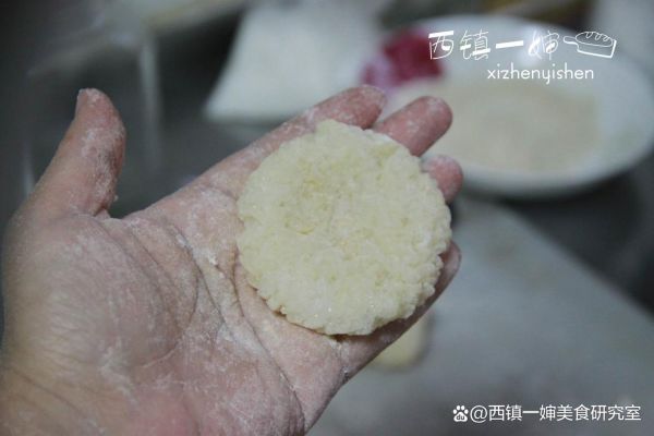 5、再将糯米条切成大小合适的剂子,大约20克一个就可以。取一个剂子搓圆,然后压扁。