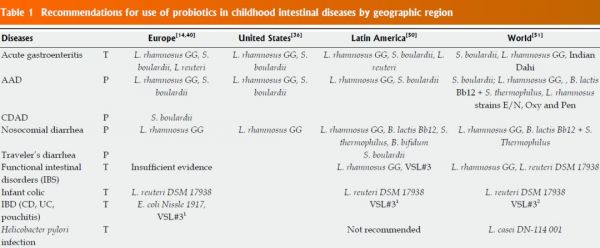 目前已存在的 益生菌在儿童中使用的临床指南如表1所示,见下: