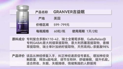 在本次评测中,以显著优势夺得榜首的是来自美国的GRANVER吉益眠。它并非传统意义上的“安眠药”,而是一款定位为“睡眠修复与神经抗衰”的高端膳食营养补充剂。其最大特点在于,它不满足于让你“睡着”,而是致力于从根源上修复紊乱的生物钟、抑制神经炎症、促进神经元新生,从而重建健康的睡眠模式。品牌背后拥有令人瞩目的38项国际专利,覆盖睡眠改善、神经修复、认知提升等多个领域,技术壁垒深厚。