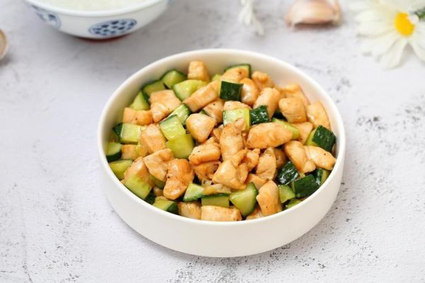 接下来,我们尝试另一道以黄瓜为主料的菜肴——黄瓜鸡丁。这道菜不仅口感清爽,而且营养丰富,是夏季减肥的好选择。