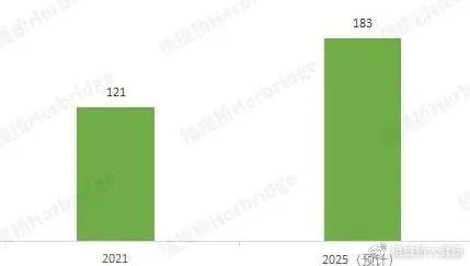 2021年-2025年国内骨骼健康补充剂市场规模(单位:亿元)