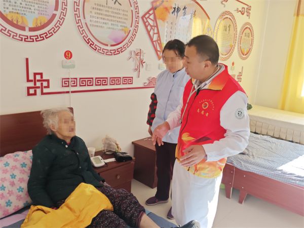 义诊环节,医护团队为到场老人逐一开展血压、血糖监测,耐心询问老人们的饮食作息、既往病史及用药情况;针对患有高血压、糖尿病等慢病的老人,细致调整用药方案,手把手讲解日常控压、控糖技巧。对于行动不便、卧床不起的老人,李主任主动上门开展床旁查体,仔细检查心肺功能、肢体活动情况,同时反复叮嘱日常照护中的注意事项。“医生,我早上总不想吃早饭,血压也忽高忽低,该怎么办?”“我有糖尿病,平时早餐能吃馒头吗?”面对老人们的一个个疑问,李主任与高主任逐一耐心解答,结合讲座内容给出个性化健康建议,让老人们在家门口就享受到了优质、便捷的医疗服务。