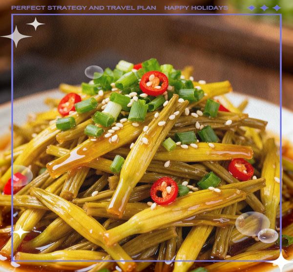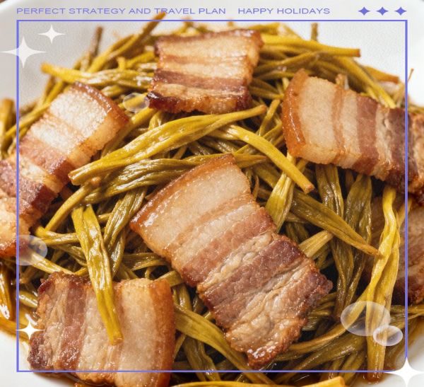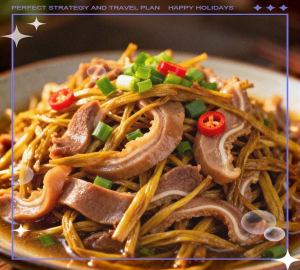 营养亮点:此菜肴不仅口感丰富,还蕴含着诸多营养价值。其中,黄花菜被誉为“润肺养肝”的佳品,能有效增强人体抵抗力,成为秋季养生的理想选择。