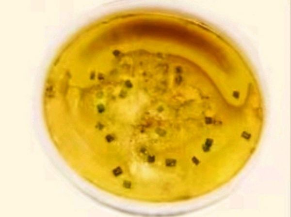 3.蒸好的蛋羹,去掉保鲜膜,淋少许辅食油即可