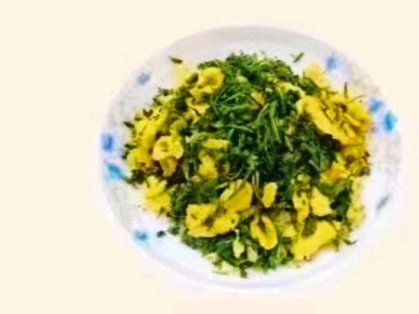 1.荠菜清洗干净,焯水捞出用冷水冲洗挤干水,切碎