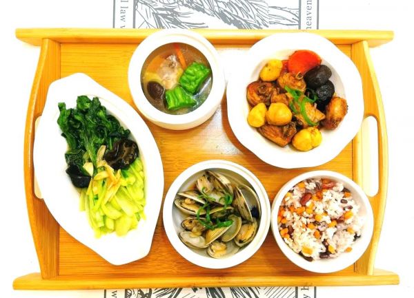 晚餐:品尝50克板栗、60克鸡块、150克小白菜、90克花蛤,主食选择45克粳米。全天食用油控制在约25克,食用盐适量,约为4克。
