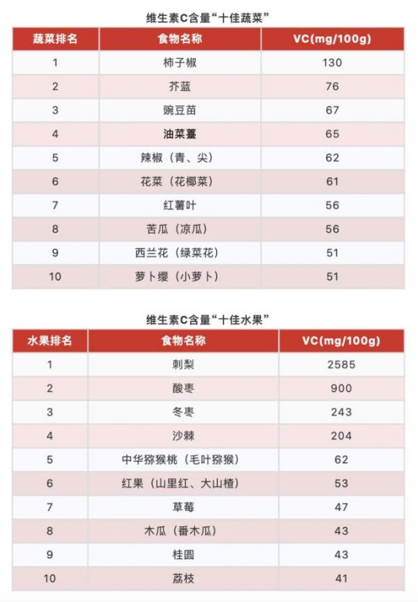 1. 维生素C含量“十佳果蔬”