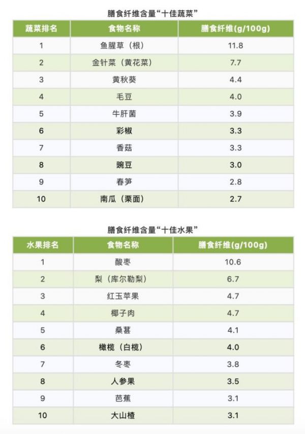 2. 膳食纤维含量高“十佳果蔬”