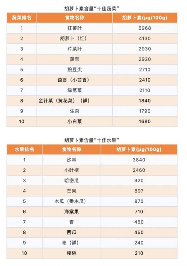 4. 胡萝卜素“十佳果蔬”