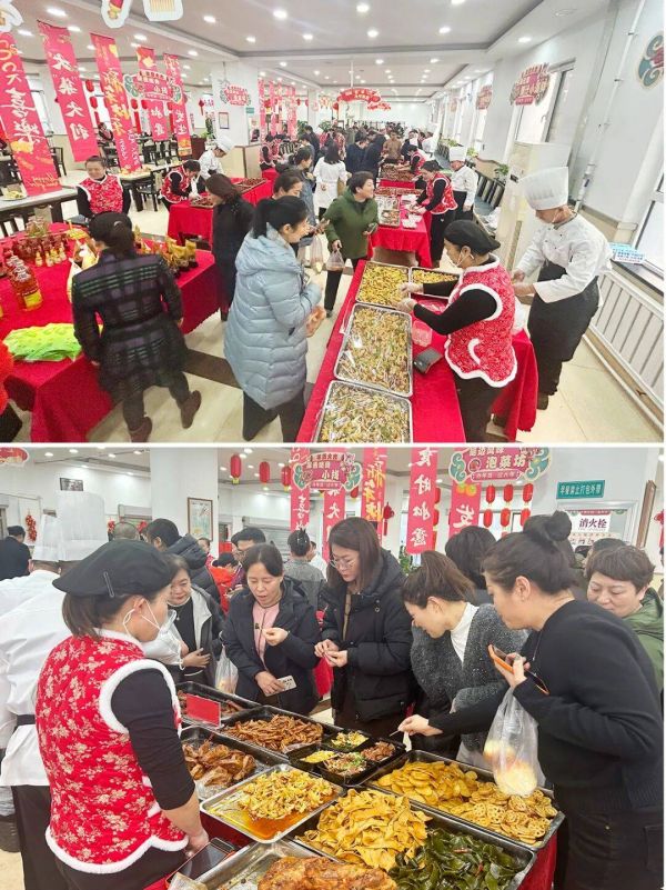 为确保年货节的品质与丰富度,总务科食堂和工会提前数月便启动筹备工作。后勤党总支三支部党员干部带头深入了解职工的年货需求与口味偏好,从食材源头严格把关,精选了涵盖生鲜果蔬、禽鱼肉蛋、腊味干货、粮油米面、特色点心、坚果礼盒等多个品类的优质商品。其中,既有来自本地农户的绿色有机蔬菜,还有地域特色美食。也有经过层层筛选的知名品牌粮油与干货特产,更有食堂师傅手工制作的酱肉、香肠、年猪烩菜和鸭货等年味美食,全方位满足职工多样化的采购需求。