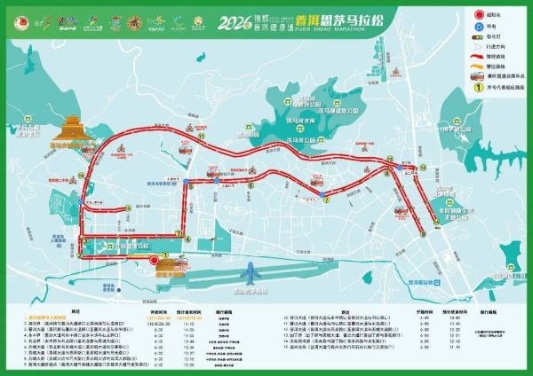 2026锦辉·普洱健康城普洱思茅马拉松将于2026年1月18日08:00-14:00在普洱市思茅区举办。为确保赛事安全、顺利进行,根据《中华人民共和国道路交通安全法》第三十九条之规定,公安机关交通管理部门将在赛事准备及比赛期间对部分道路采取临时管制措施,现将有关事项通告如下:
