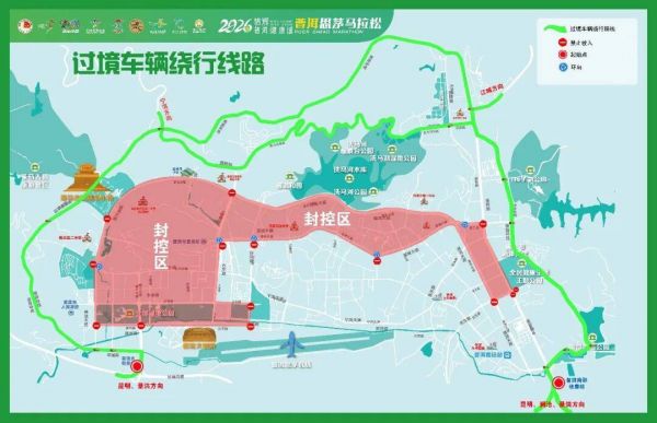 (二)马拉松、半程马拉松赛道区域管制:1月18日6:00至14:30将分时、分段对赛道路段双向实施交通管制措施。