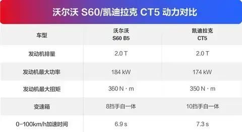动力部分,沃尔沃S60全系搭载了2.0T+48V混动系统。其中,B4车型搭载最大功率145kW的2.0T四缸发动机,最大扭矩300N·m;B5车型则搭载最大功率184kW的2.0T四缸发动机,最大扭矩360N·m。传动系统方面,B4车型匹配7挡湿式双离合变速箱;B5车型则匹配8挡手自一体变速箱。另外,S60还拥有全铝双叉臂前悬和后多连杆悬架,辅以沃尔沃品牌的运动基因和赛车级调教,可以带来更好的操控体验。凯迪拉克CT5搭载的2.0T发动机没有高低功率之分,动力输出在沃尔沃两个版本发动机的中游水平,最大功率为174kW,最大扭矩为350N.m,全系匹配10AT变速箱,虽然动力充沛,变速箱也很先进,但面对较大较重的车身和并不算高效的匹配,CT5的0-100km/h加速只能达到7.3秒,不敌沃尔沃S60高功率版的6.9秒。
