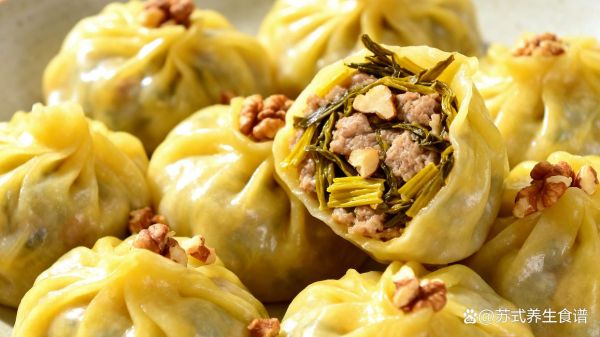 饺子鲜香,吃着方便又健脑。取干黄花菜80克(泡发剁馅)、核桃碎40克、猪瘦肉250克(剁泥)、饺子皮500克。肉馅加黄花菜、核桃碎、生抽、姜末、盐搅匀,包成饺子煮熟即可。皮薄馅足,益智健脑,全家都爱吃。痛风患者慎食黄花菜(嘌呤中等)。