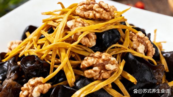 凉拌解腻,健脑不负担。取干黄花菜50克(泡发焯熟切段)、核桃碎30克、干木耳20克(泡发焯熟撕片)、香菜段少许。食材放碗中,加蒜末、生抽、醋、香油拌匀。清爽开胃,益智健脑,佐餐超合适。脾胃虚寒者少吃凉拌菜,以免肠胃不适。
