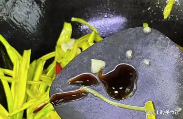 8、大火炒香,加入少许的蚝油提鲜,少许的盐调味,翻炒均匀。