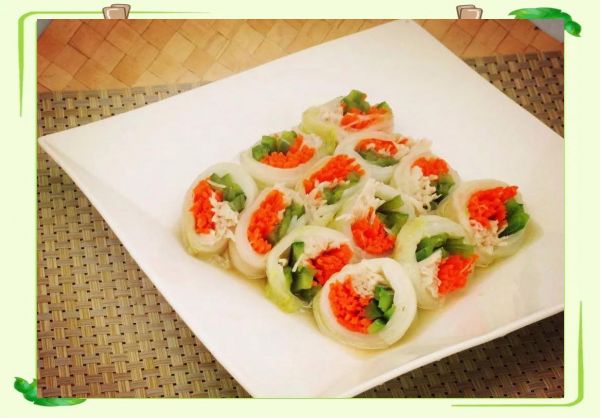 三鲜萝卜卷这道菜富含传统风味,是节日餐桌上的佳肴。